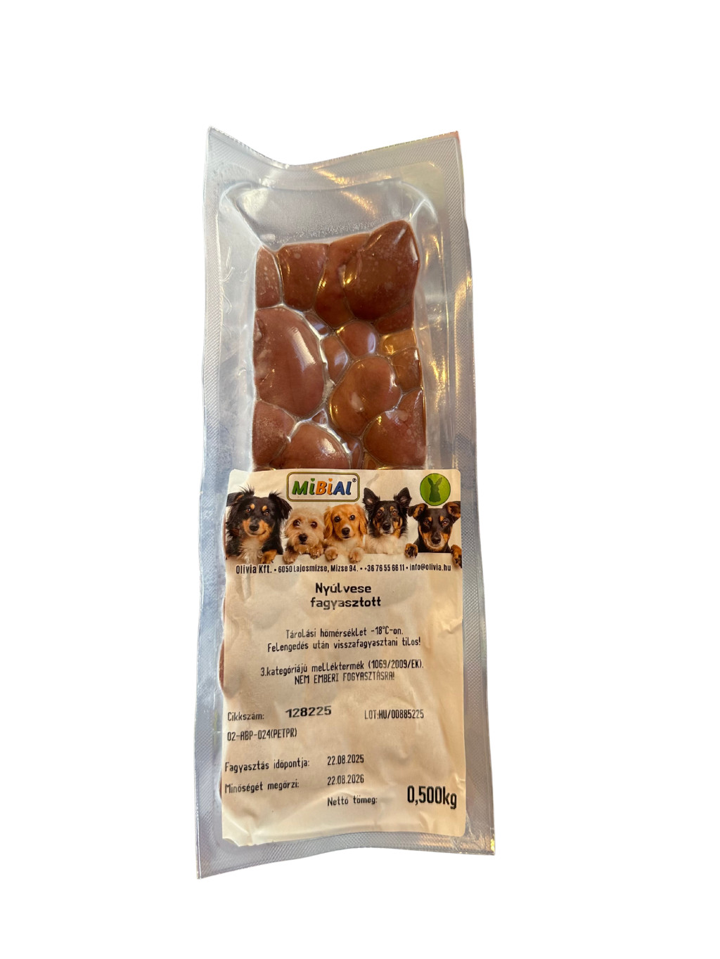 A fagyasztott nyúlvese kiváló minőségű, természetes belsőség, amely ideális választás a BARF étrendet követő kutyák és macskák számára. Magas biológiai értékű fehérjét, B12-vitamint, vasat, cinket és szelént tartalmaz – ezek az ásványi anyagok elengedhetetlenek az egészséges vérképzéshez, immunrendszerhez és anyagcseréhez.