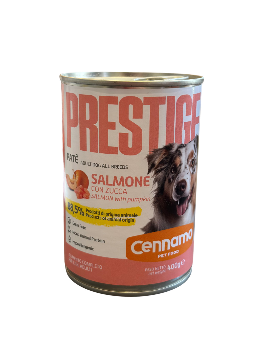 Szuperprémium minőségű, hipoallergén, gabonamentes halkonzerv felnőtt kutyák számára, fajtától függetlenül.