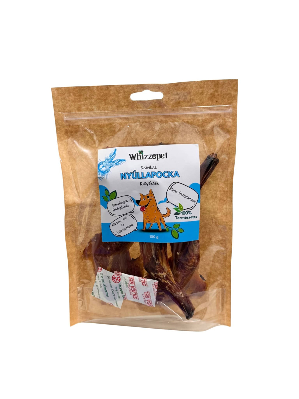 A szárított nyúllapockát mindig felügyelet mellett add a kutyádnak, friss ivóvíz biztosítása mellett. Jutalomfalatként vagy alkalmi rágós elfoglaltságként ajánlott, nem folyamatos rágásra.